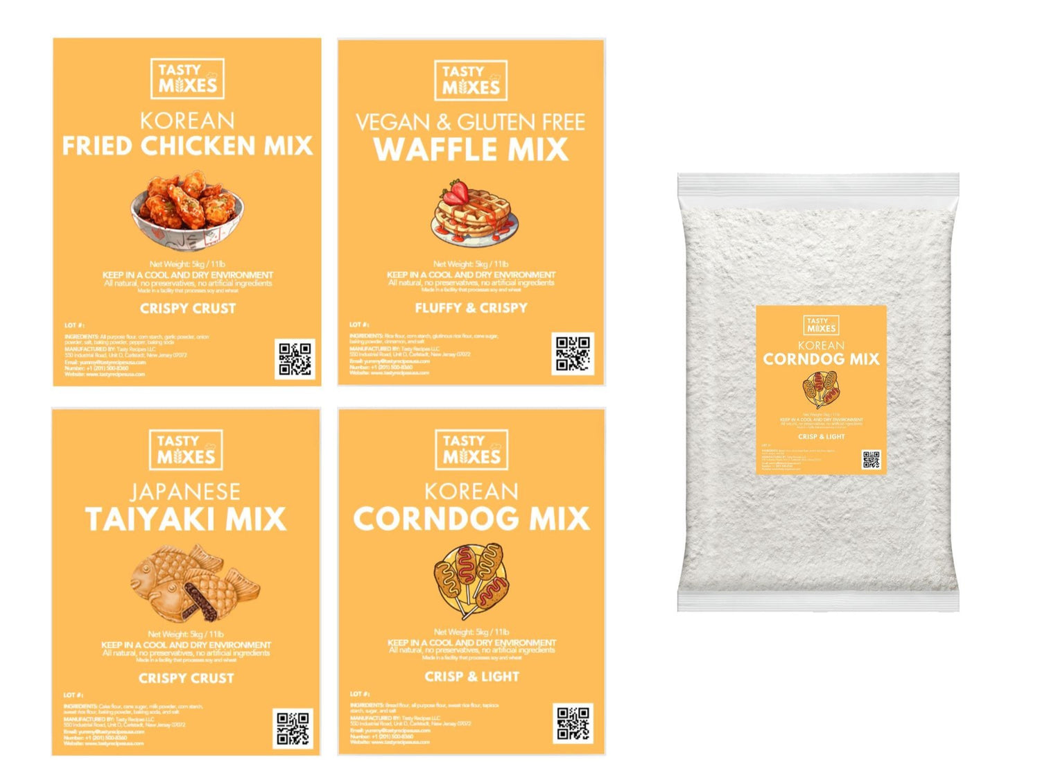 Explore our special flour blends from making Taiyaki fish cakes and Korean corndogs to chicken batter and waffles! No need to worry about ordering in bulk, we keep it manageable! If you want to try your own recipe, begin with just a dozen and expand as you please!