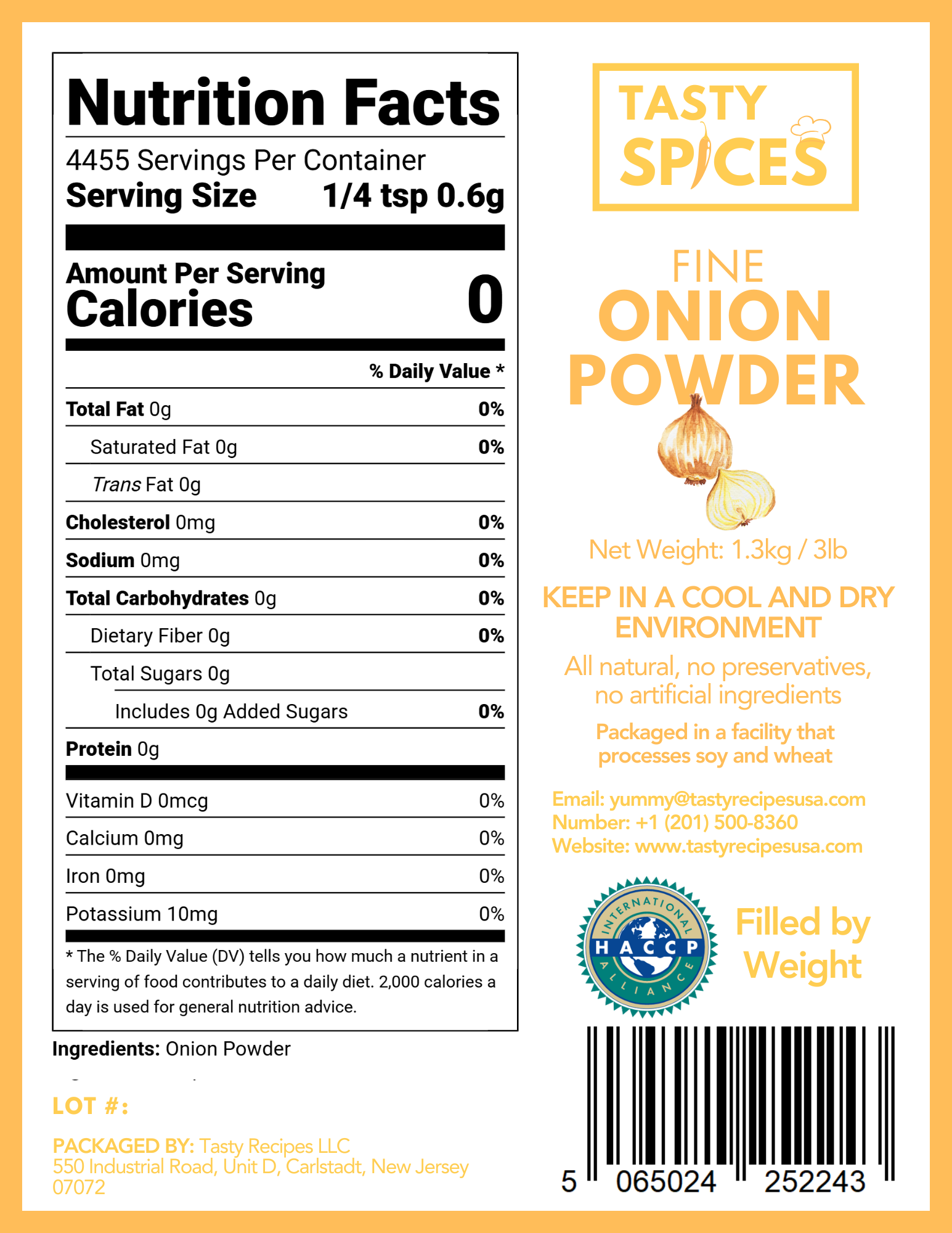 This 3lb bulk package of Onion Powder delivers a rich, concentrated onion flavor perfect for professional kitchens and culinary enthusiasts. Its affordable bulk size ensures a reliable supply for seasoning, cooking, and enhancing a wide range of dishes with consistency and ease.